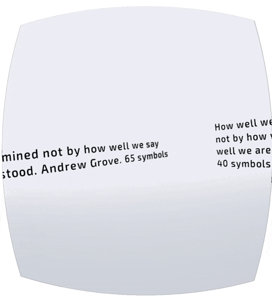 As we know, 50–75 for desktop and 30–40 for mobile are preferable line length. Also, VR resolution of screens and self-awareness of user is worse what will make the ability to keep line worse. But to figure out preferable options, let's have a look at examples. Easy to the got idea that in virtual reality line length should depend on the size of the font itself, as even 60 letters in 3.45° size are already way too long.