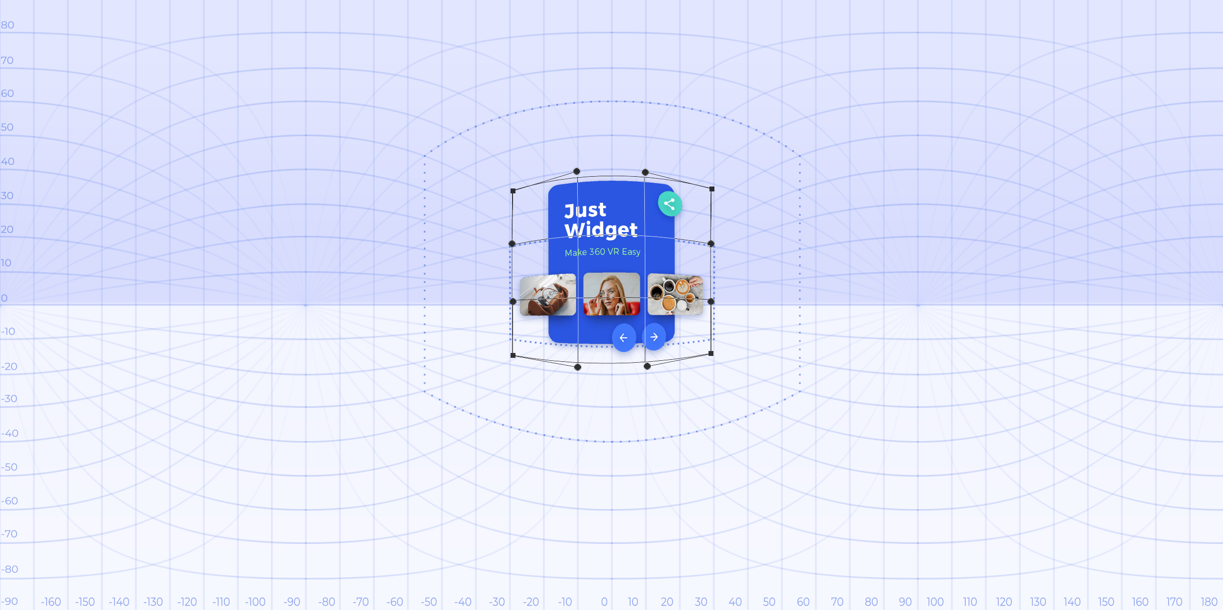 Let’s start by drawing a flat widget in the centre of the field of view. If you will keep it without transformation and open in VR, you will notice that the widget is curved.