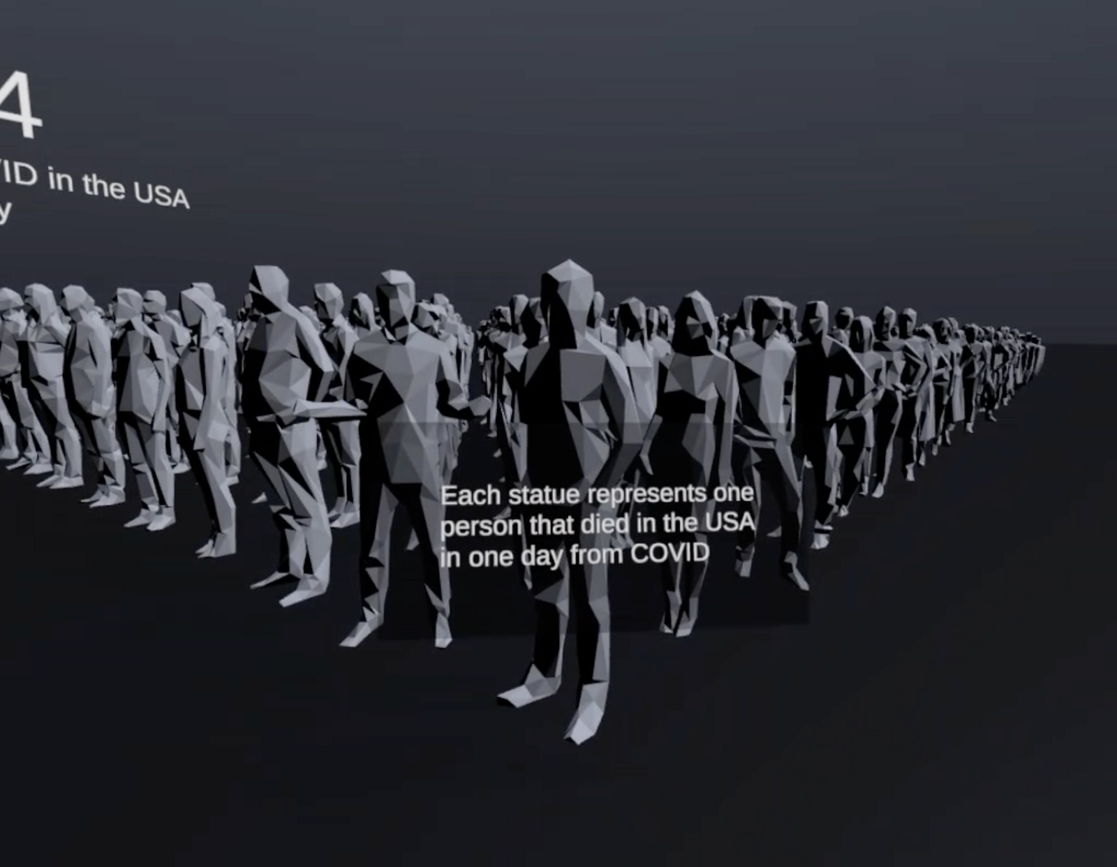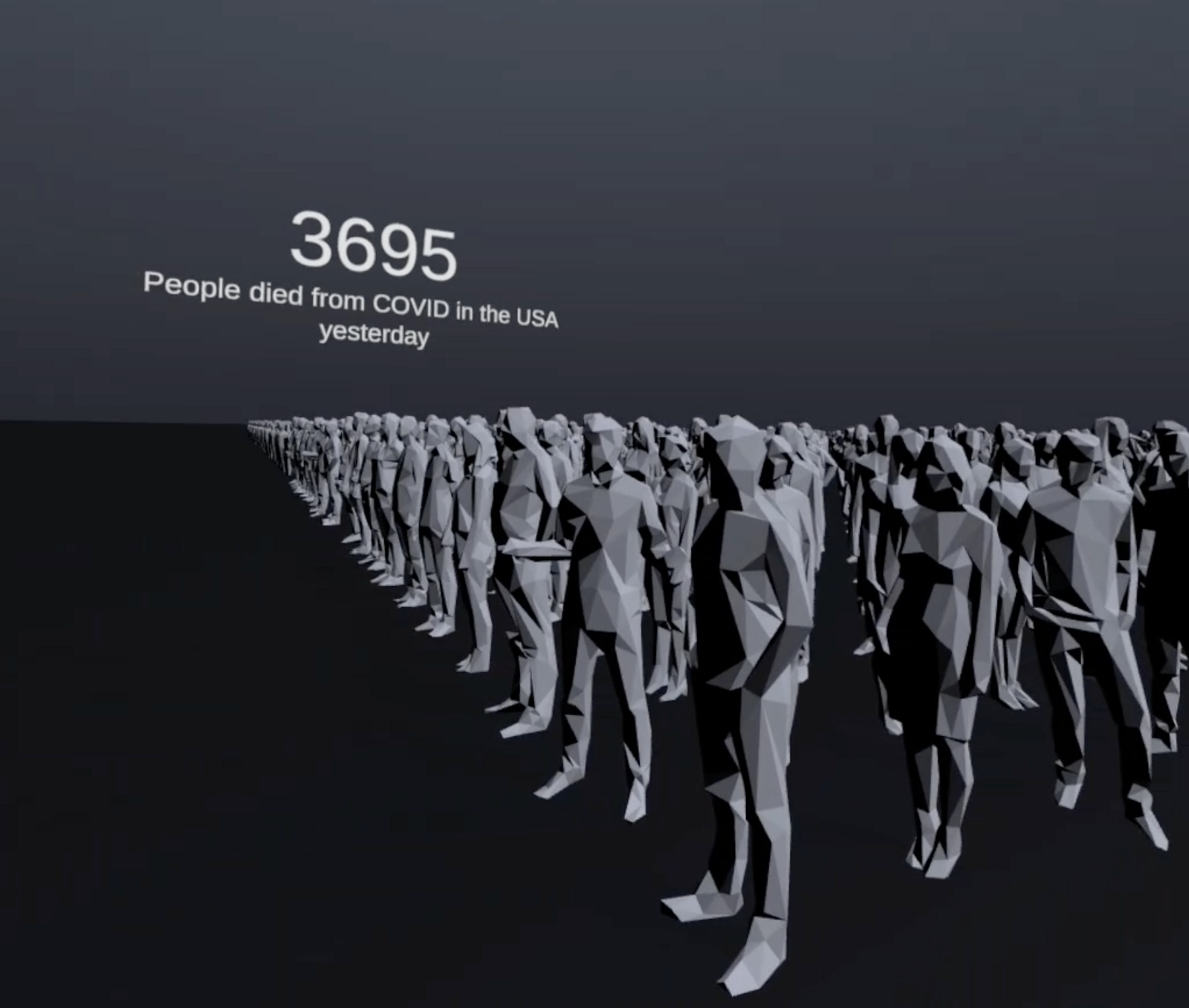 I’ve been exploring the use of real scale scenes in VR to make dataviz more influential for quite some time (Human factor in virtual reality data visualization). So, when I saw the COVID death toll started rising again, I figured out that VR might help in understanding the true scale of the problem, as statistics have become just relative numbers disconnected from real life.