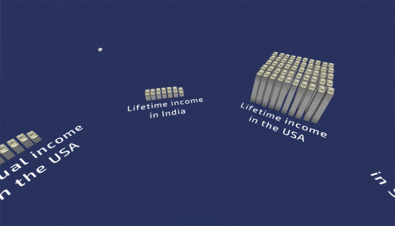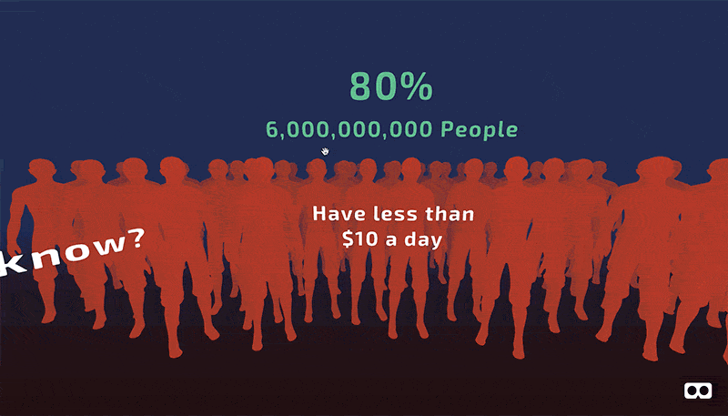 With real-life objects and feelings, data visualization gets much more sense than just bar charts. I tested them on a few people and got interesting feedback. In VR demos they were much more involved. VR view doesn’t give more understanding of size or numbers. But immersive experience definitely helped users understand more clearly values behind numbers.