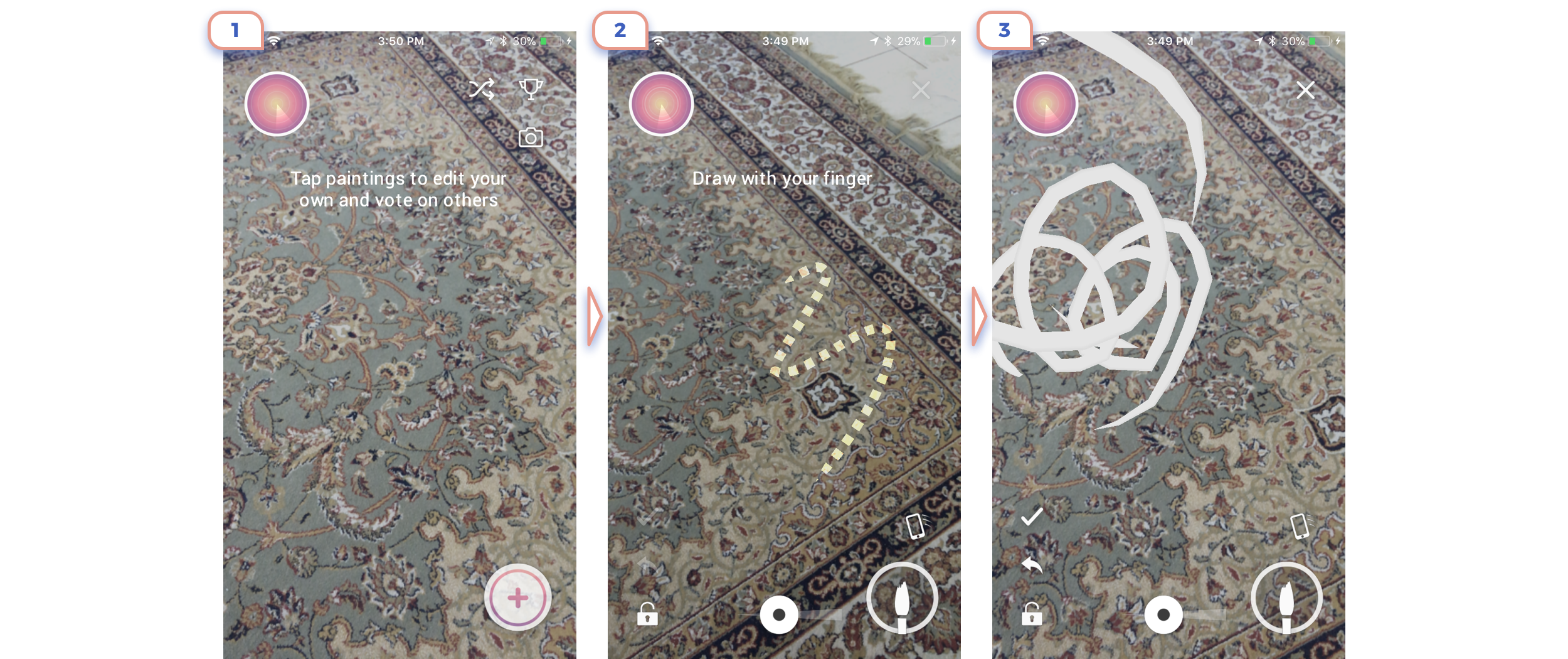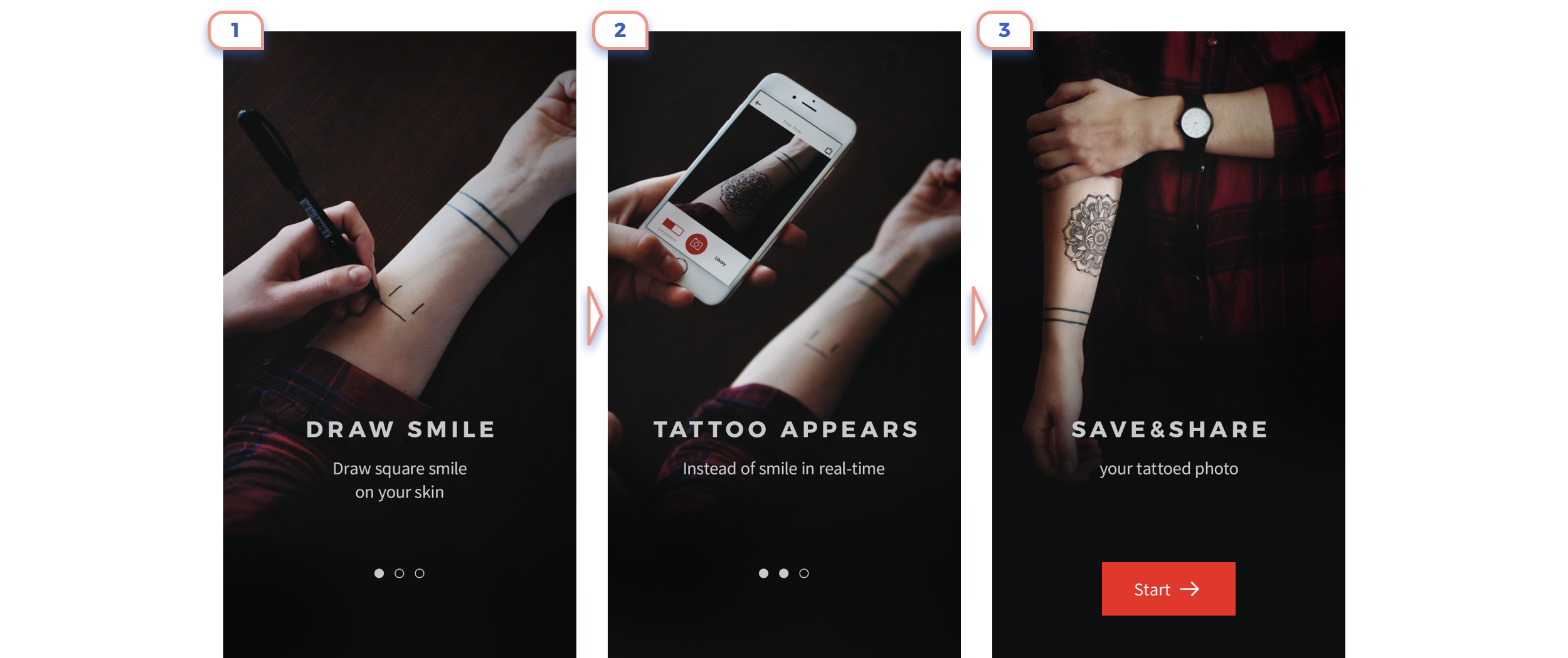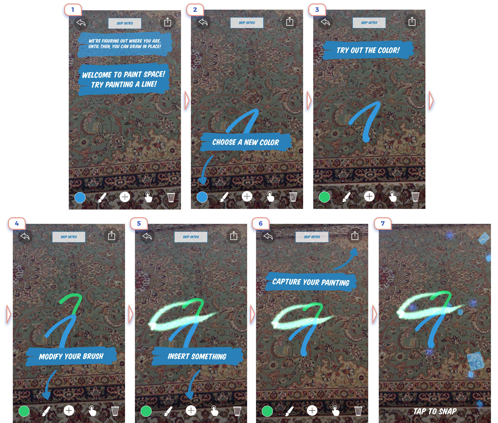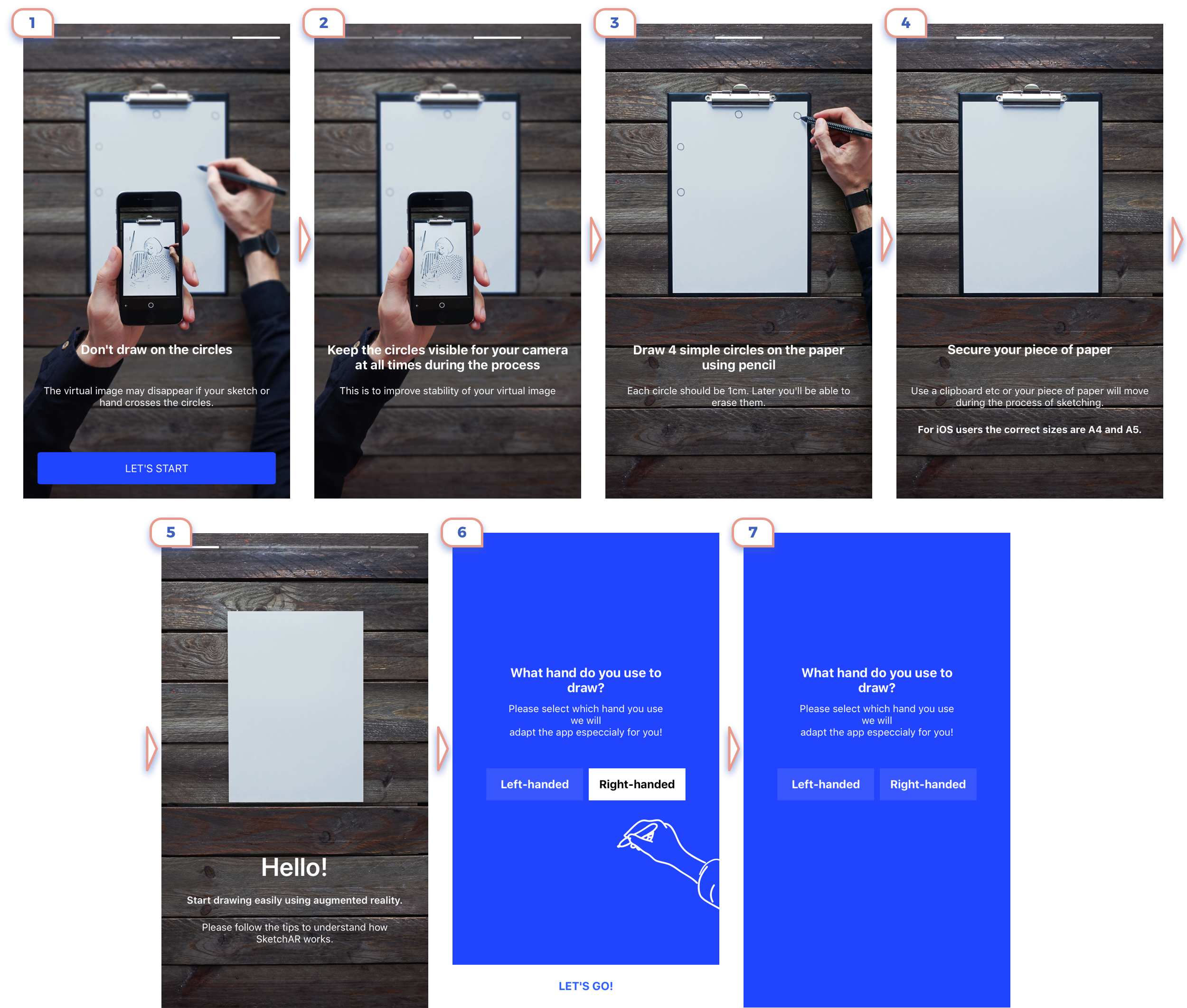 This app is form “Before ARKit Era”, therefore the user has to draw marker to place art. They explained very clearly complicated flow in only three slides.