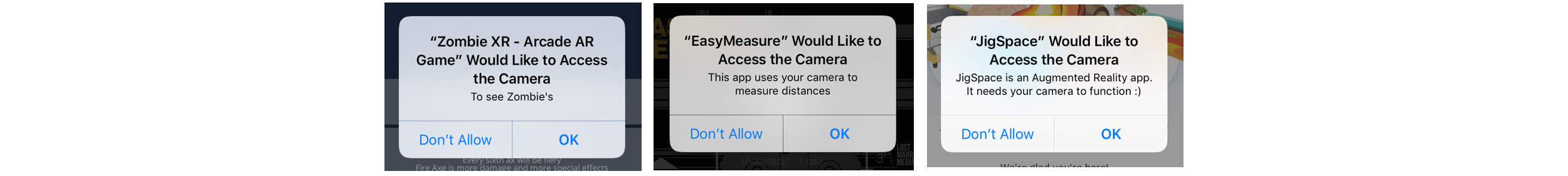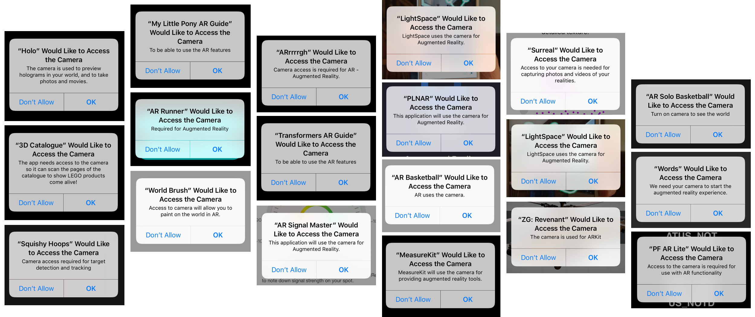 And most of the apps have more or less clear explanation that they need the camera for augmented reality.