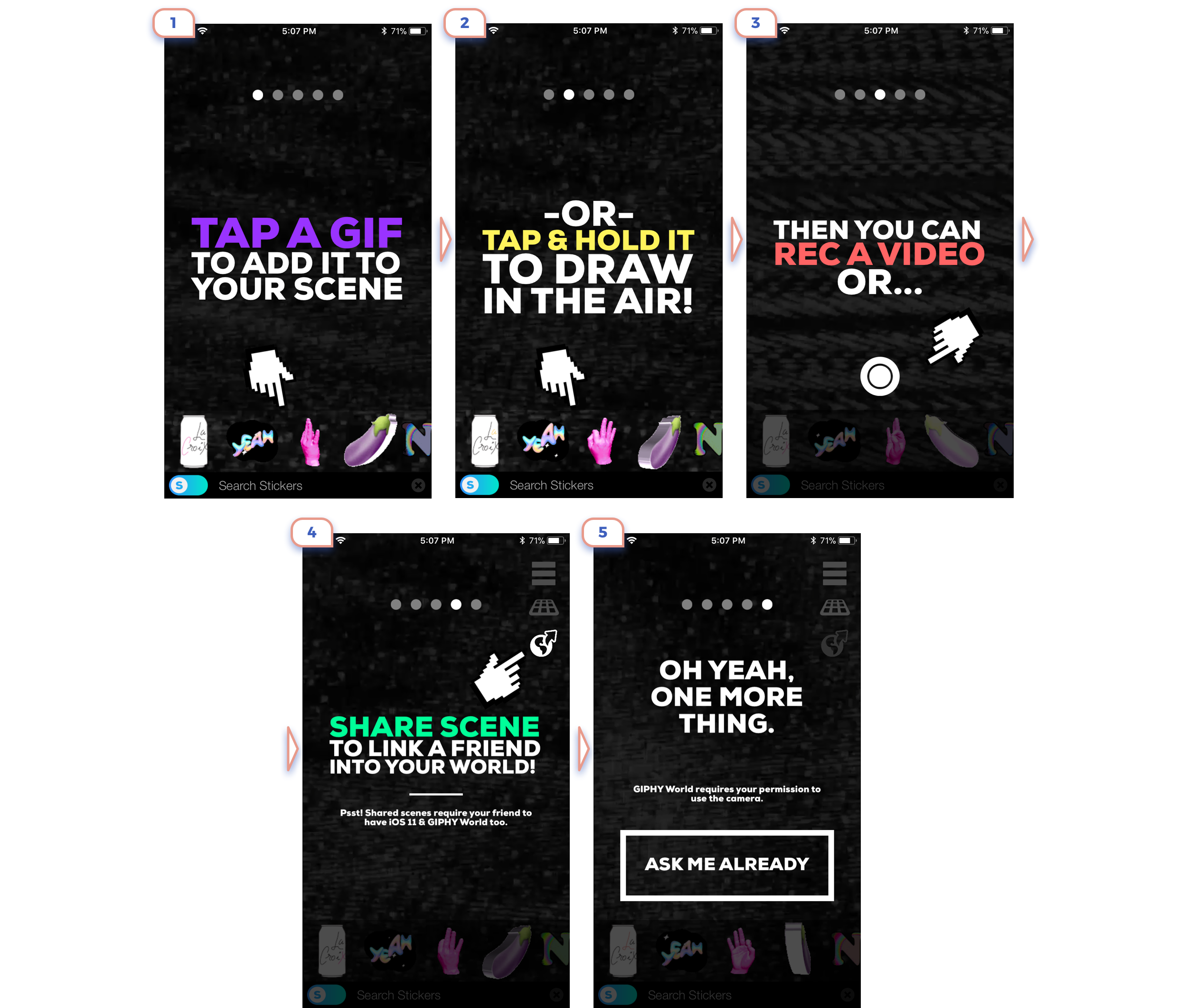One more example from “Before ARKit Era”. Of course, questionary if this explanation could efficiently fit in fewer slides. But for future more critical is another idea: Don’t try to invent unique flow, use all known gestures will save you a lot of time on onboarding and lower exit rate.