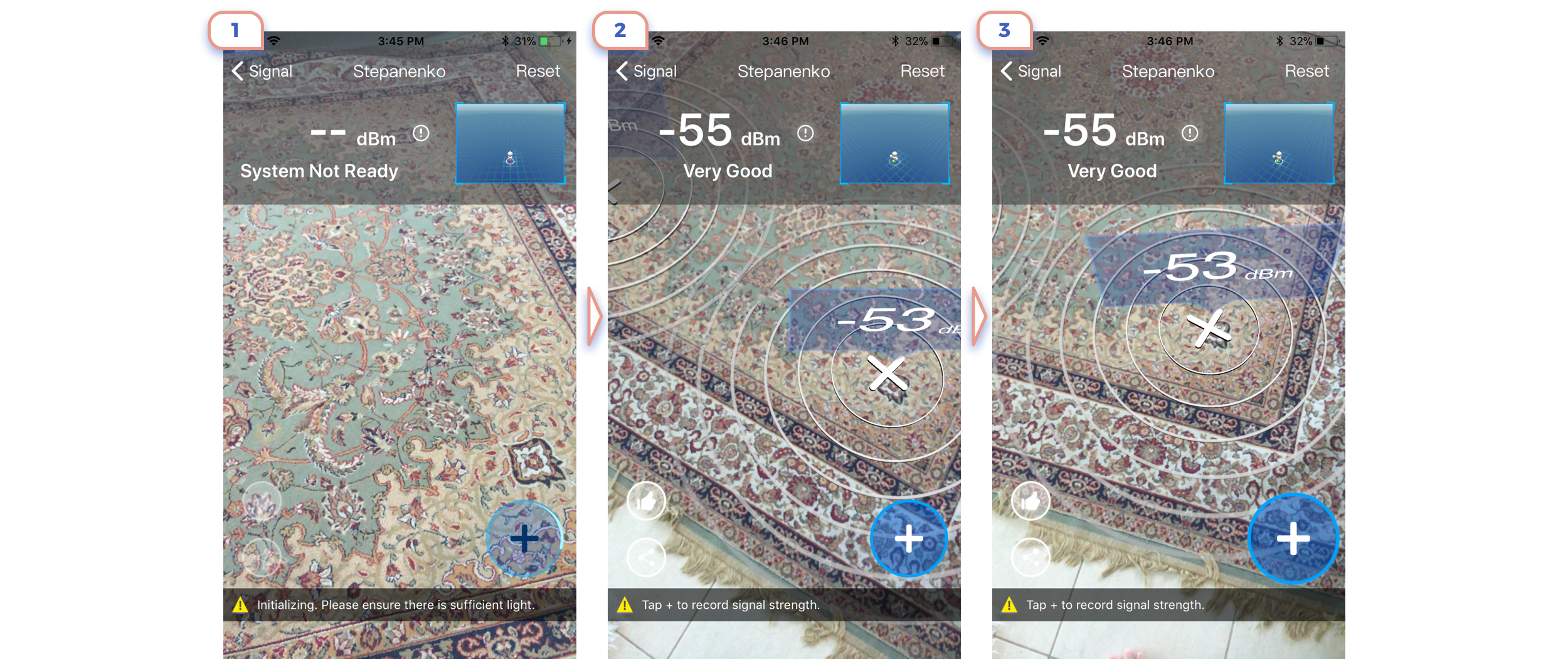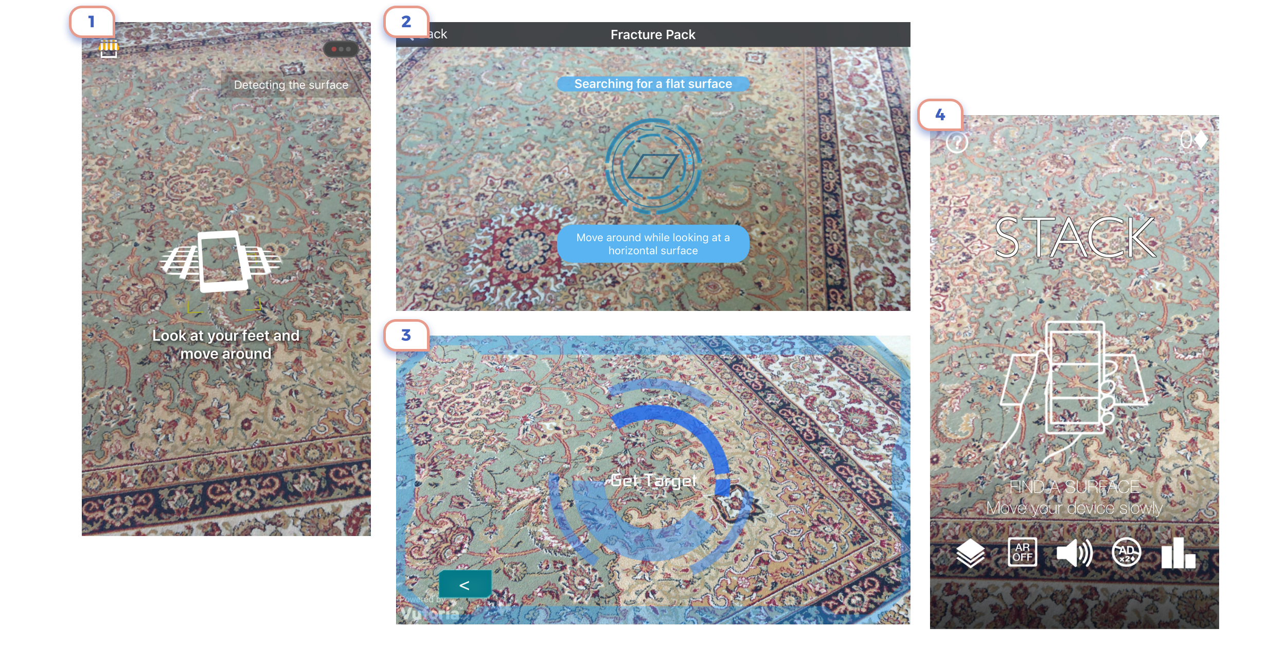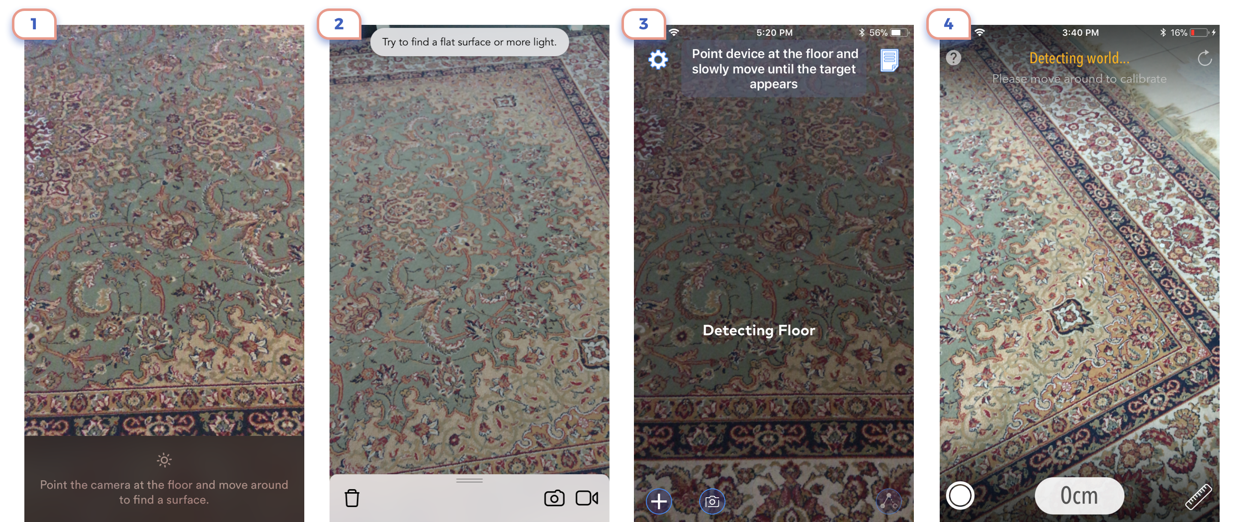 Here and later I’ll use my Persian carpet as background for augmented reality. It looks ugly, but there are reasons for this. At first, ARKit recognizes it pretty easy. At the second such environment is the excellent test for readability of texts and UI elements.