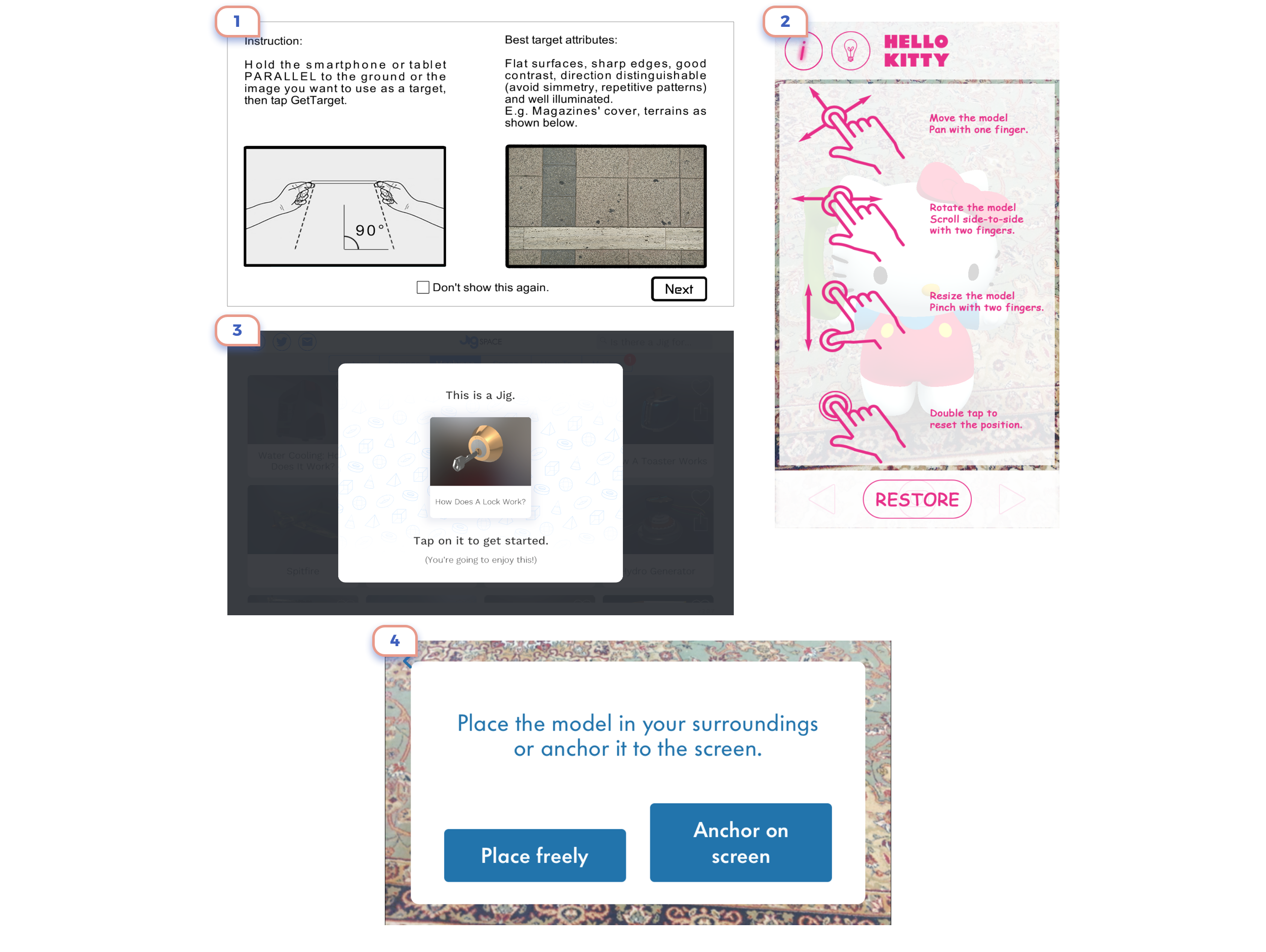 Using first time application with augmented reality is so exciting and obscure that it’s tough for the first-time user to understand and get value. There is some learning curve. With current best practices, gestures and interactions are natural and intuitive. The only thing that left for creators of AR apps only use them. We should try to make the onboarding process as maximum flawless.