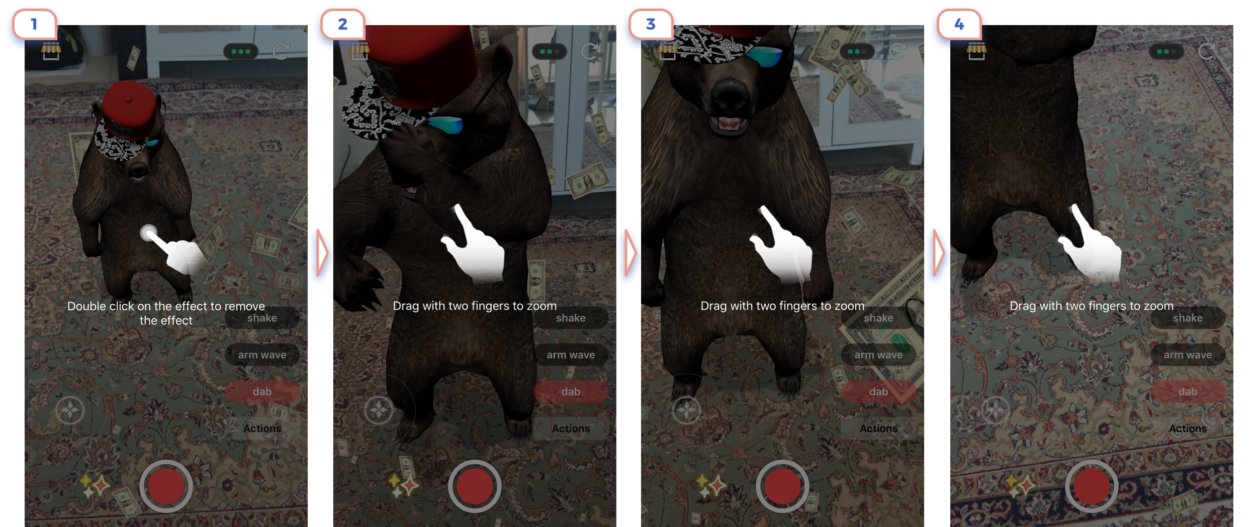 Here is one more example of tips on top of camera view. But I wouldn’t recommend paying so much attention to explain basic gestures like pinch to zoom.