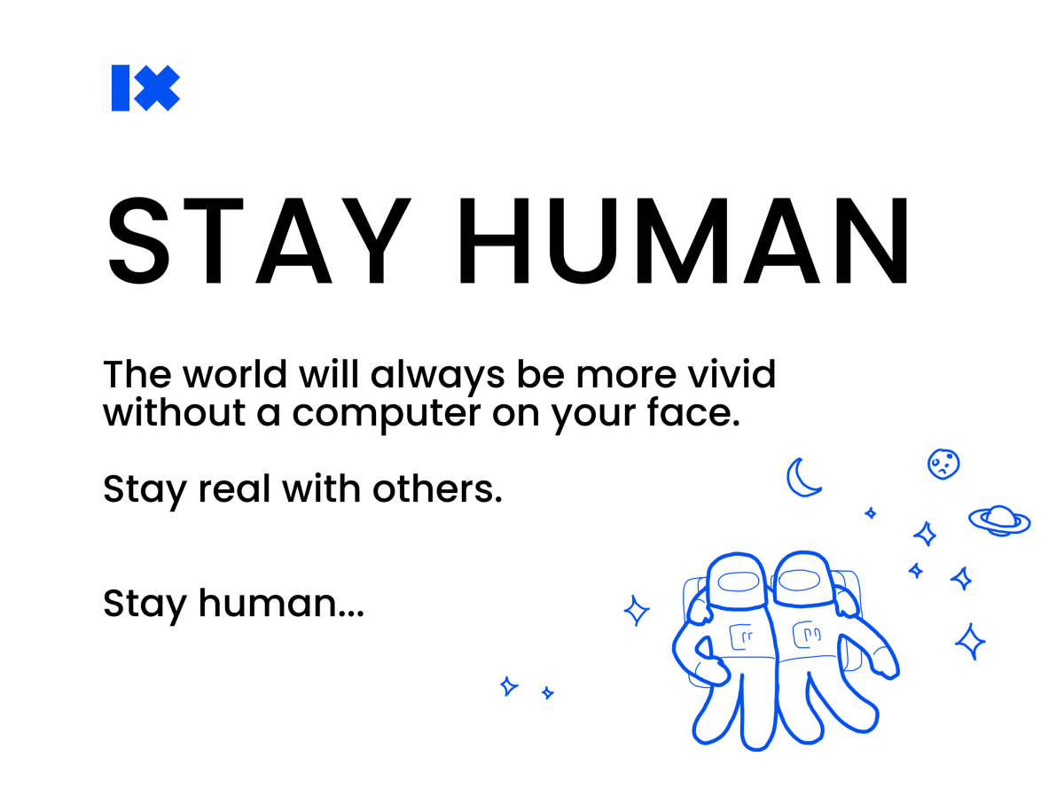 The world will always be more vivid without a computer on your face. Stay real with others. Stay human.