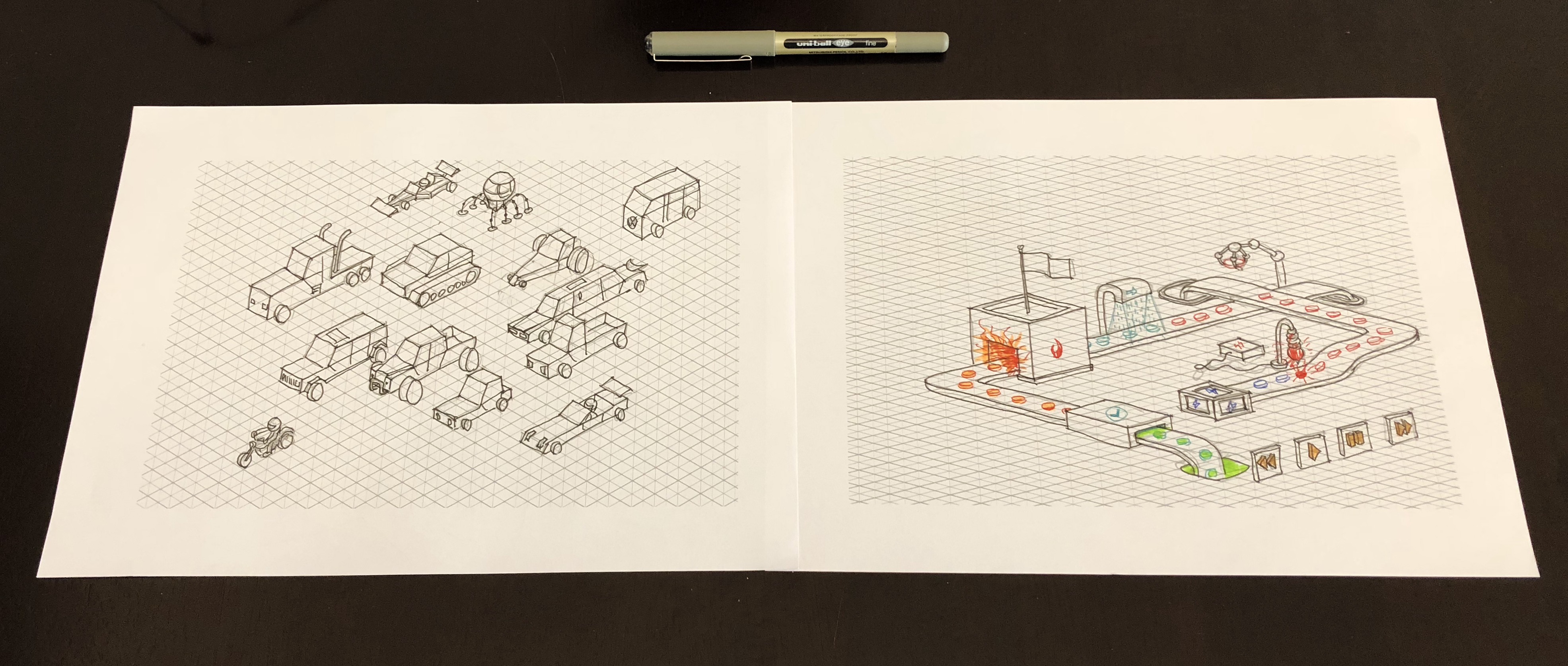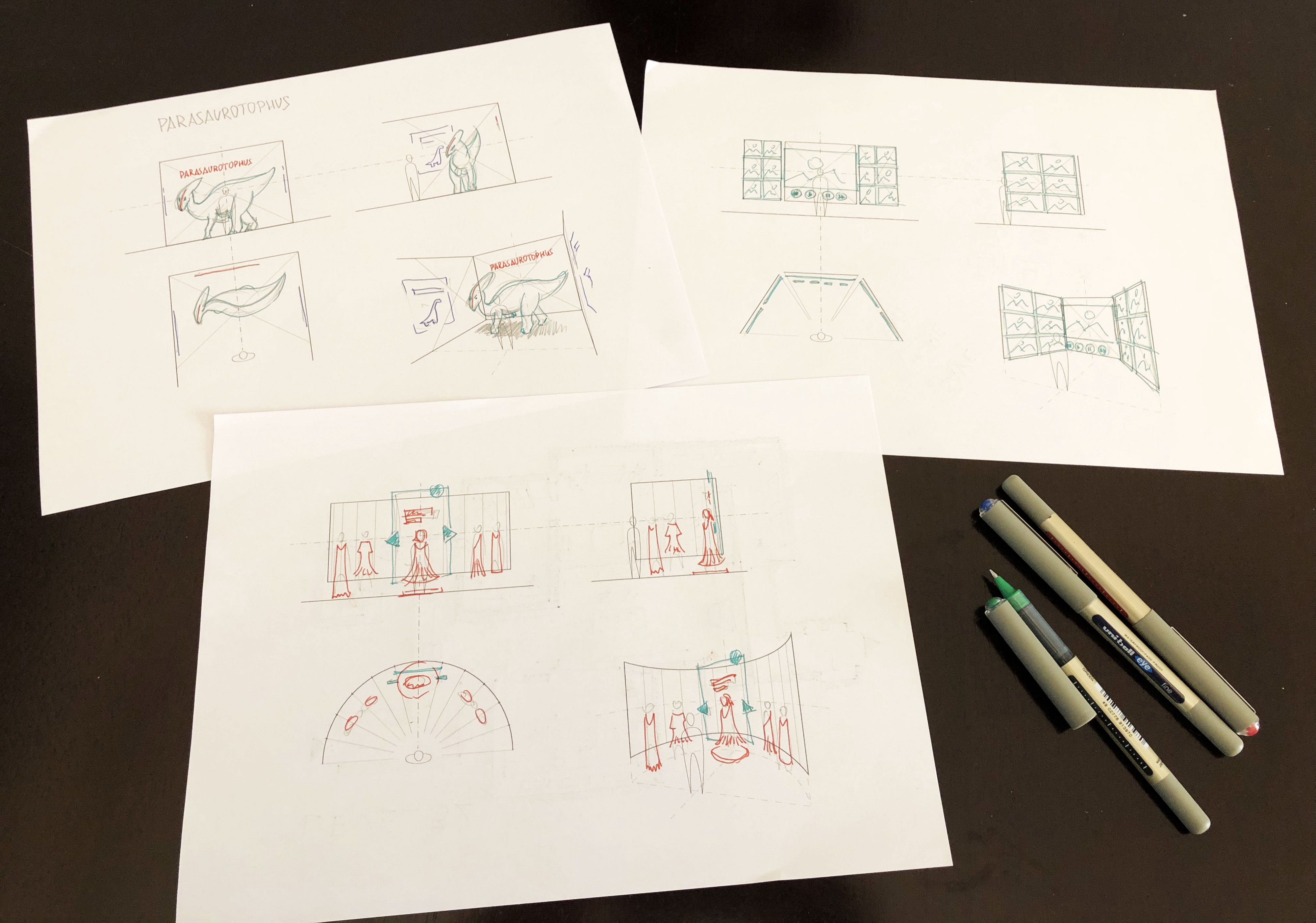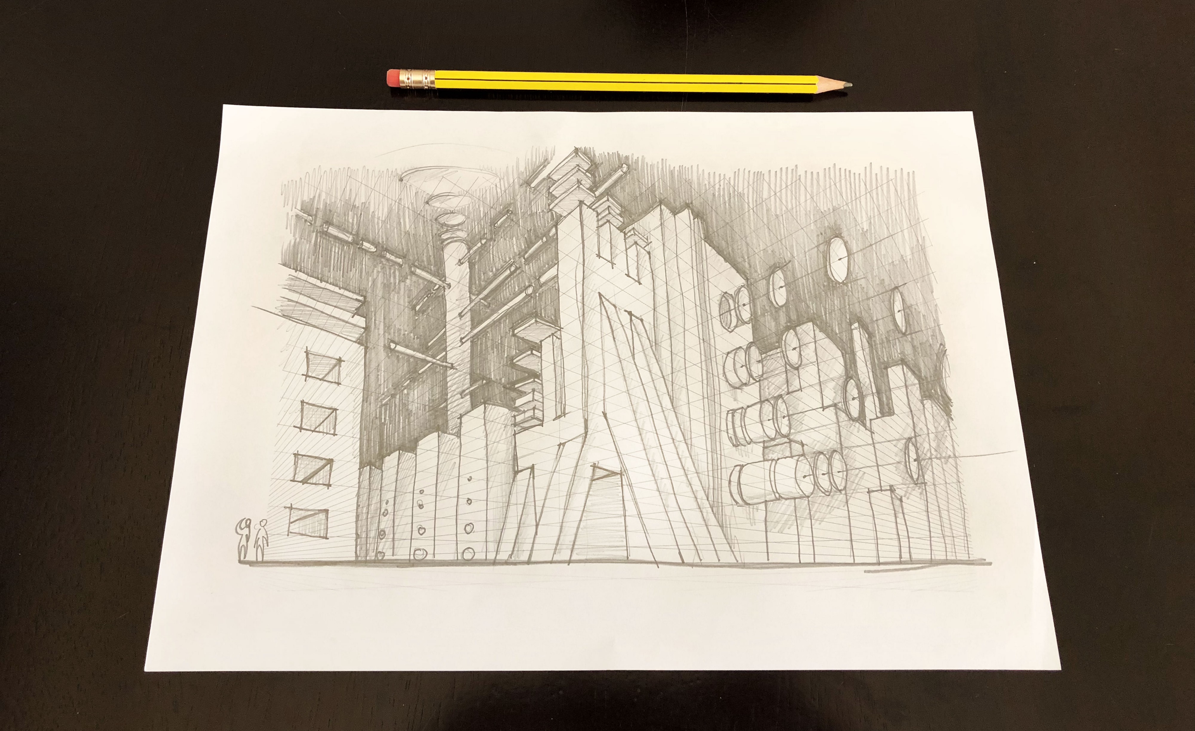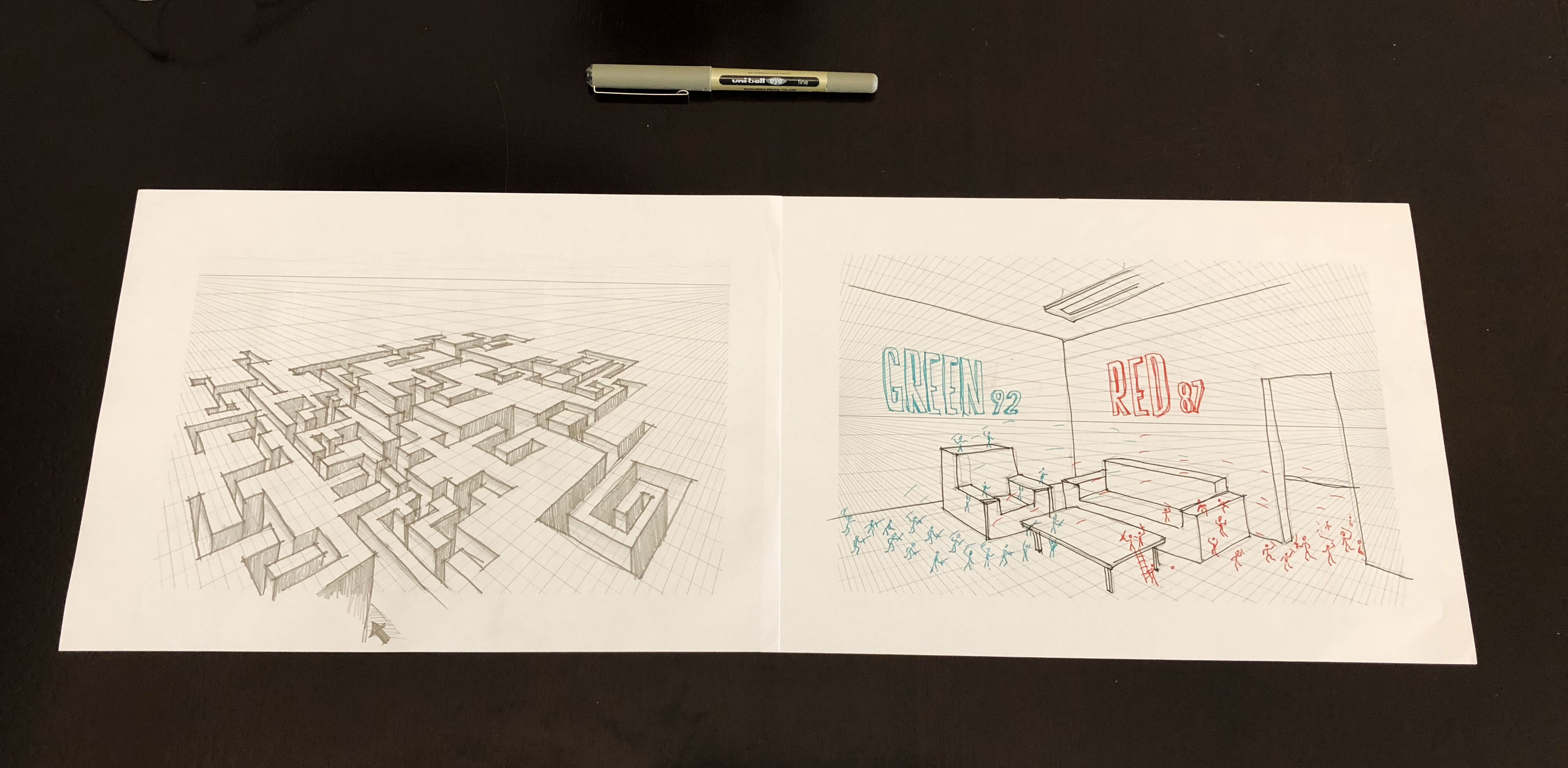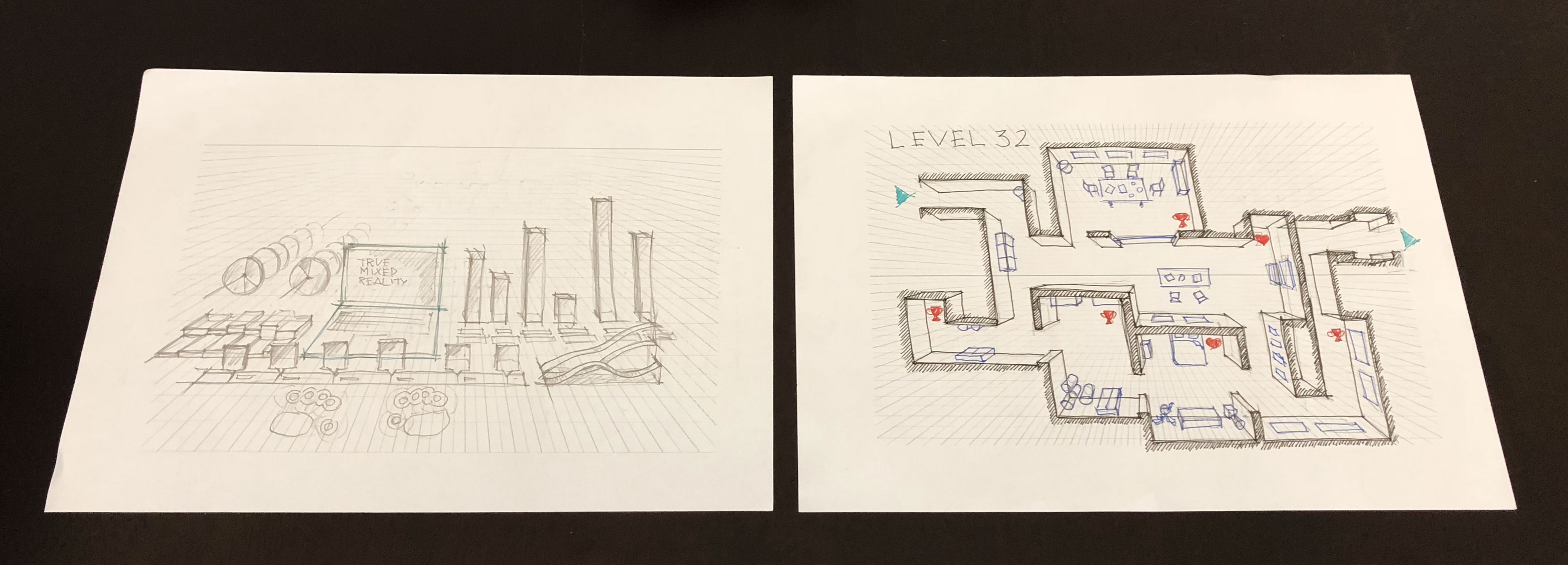 This is not only to rules that apply to ergonomics and visual perception but also to some obvious things like grids. I have used perspective theories that I learned during my studies as an architect quite often since then. I never thought that I’d be using them to sketch my own realities many years later.